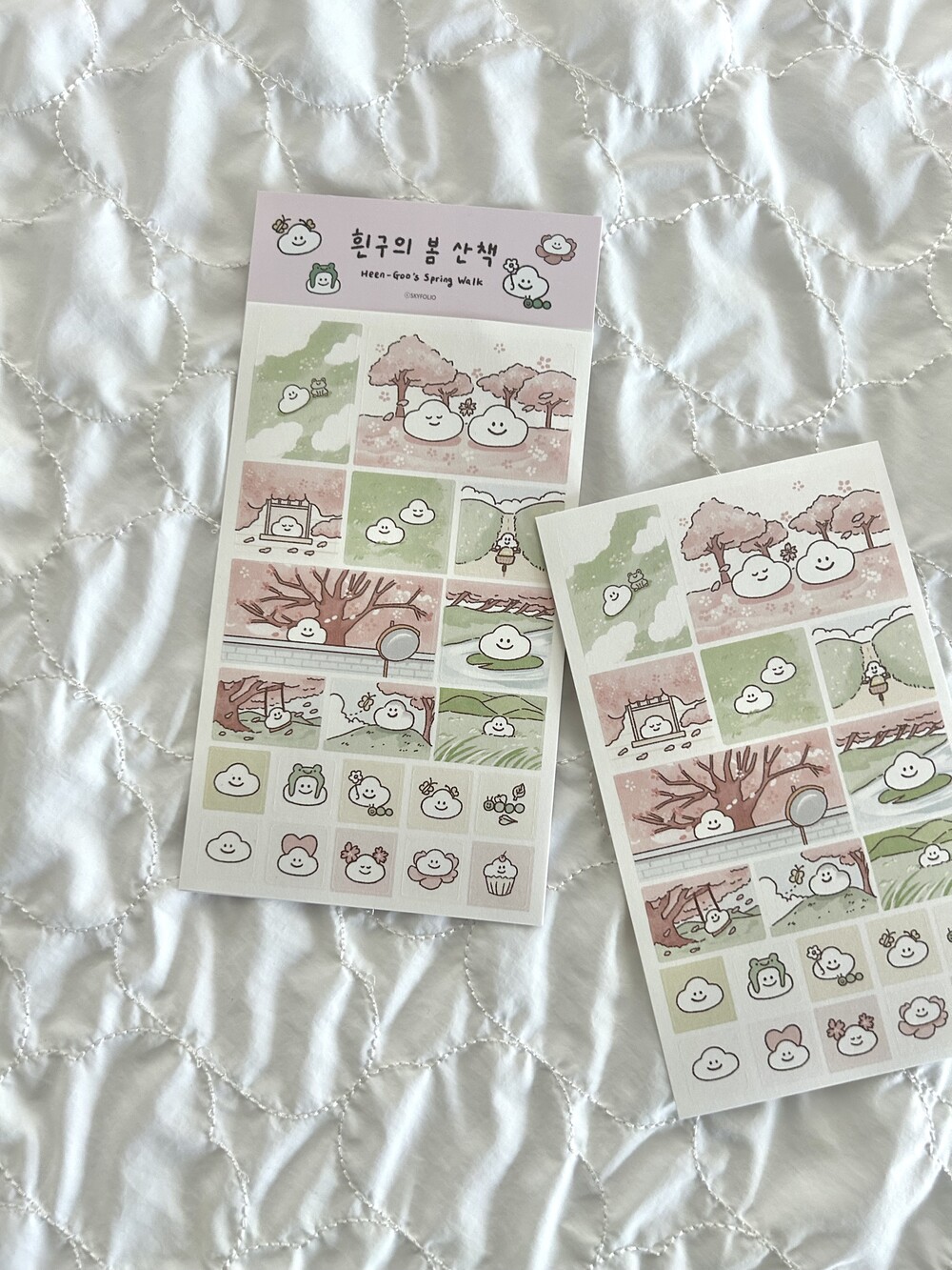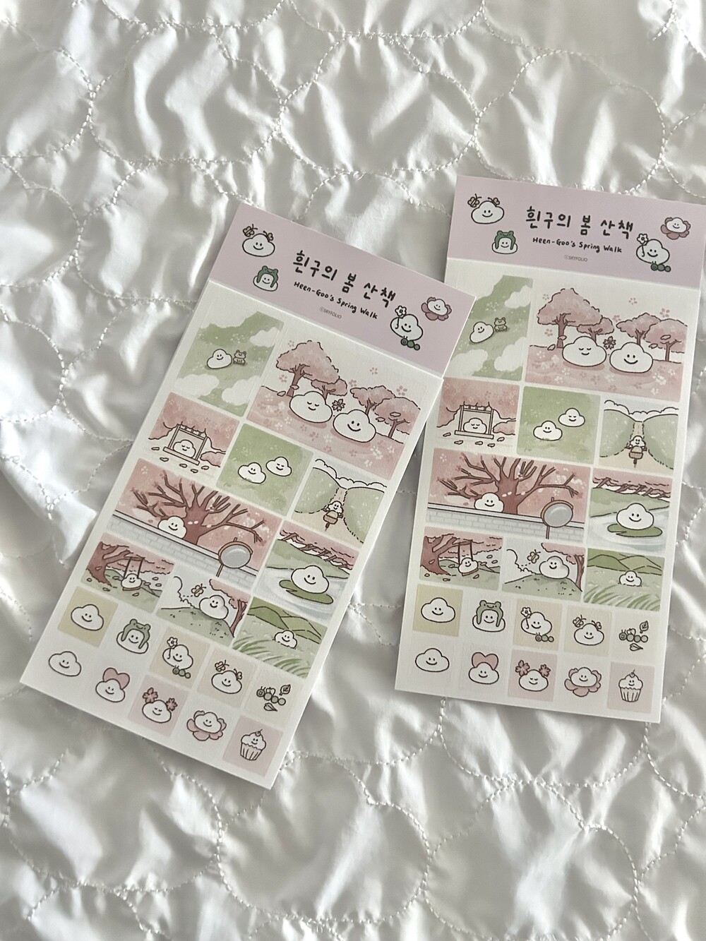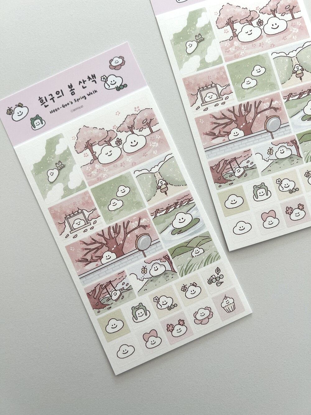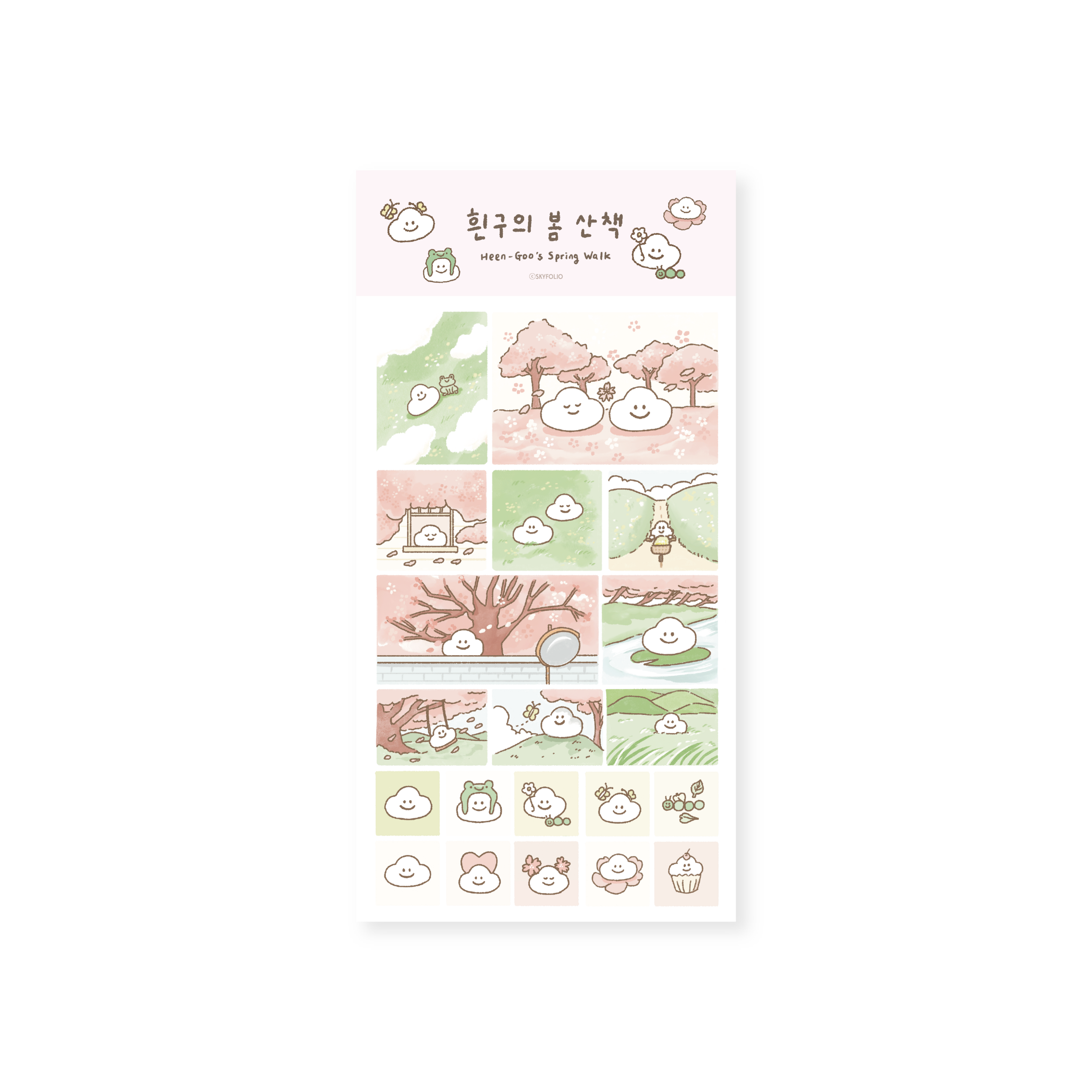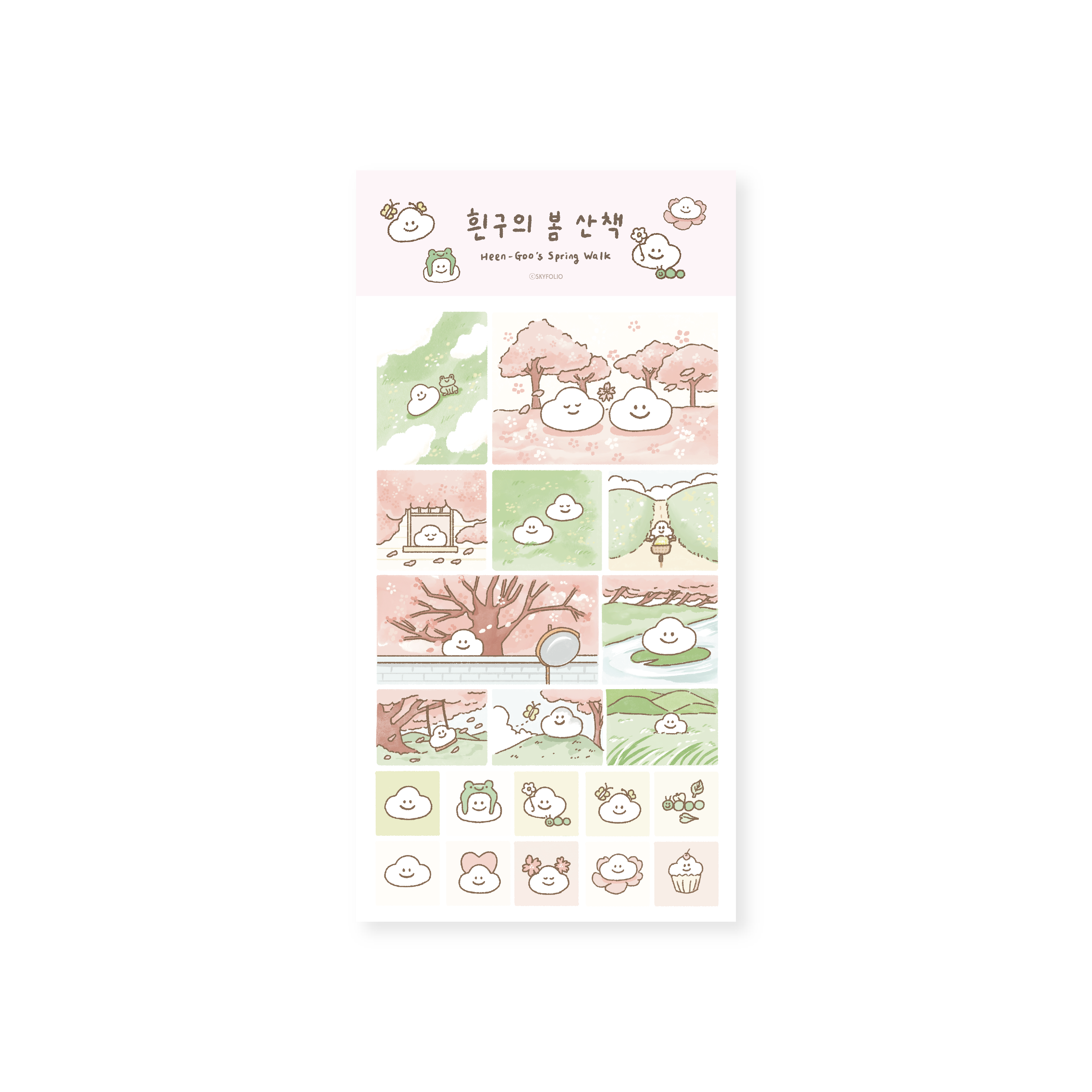 흰구의 봄 산책- 네모 모조 스티커