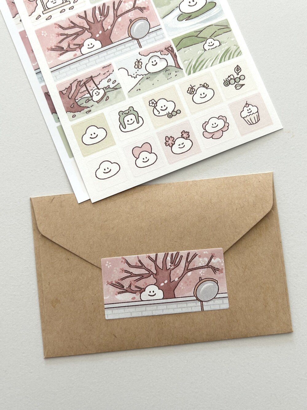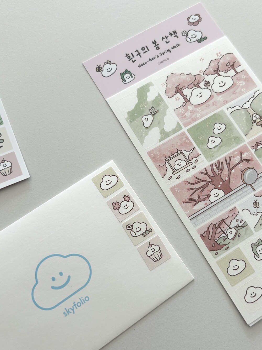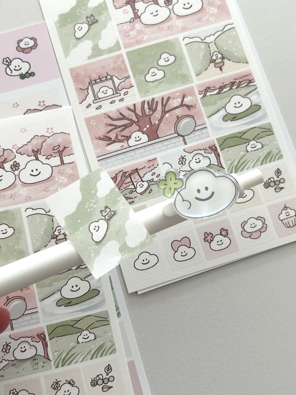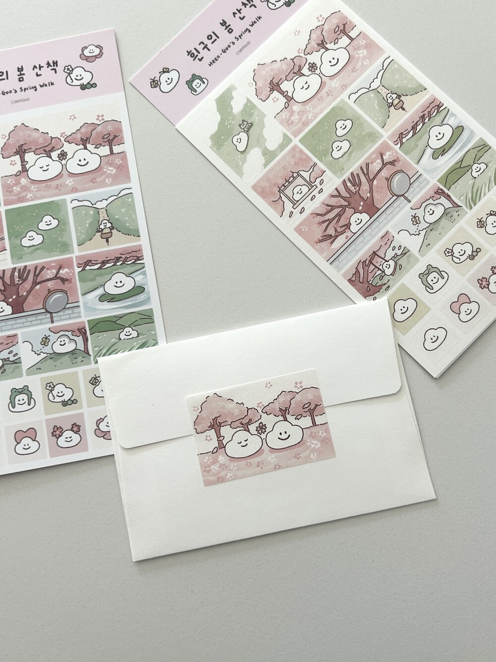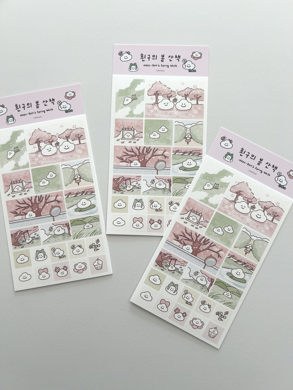 흰구의 봄 산책- 네모 모조 스티커