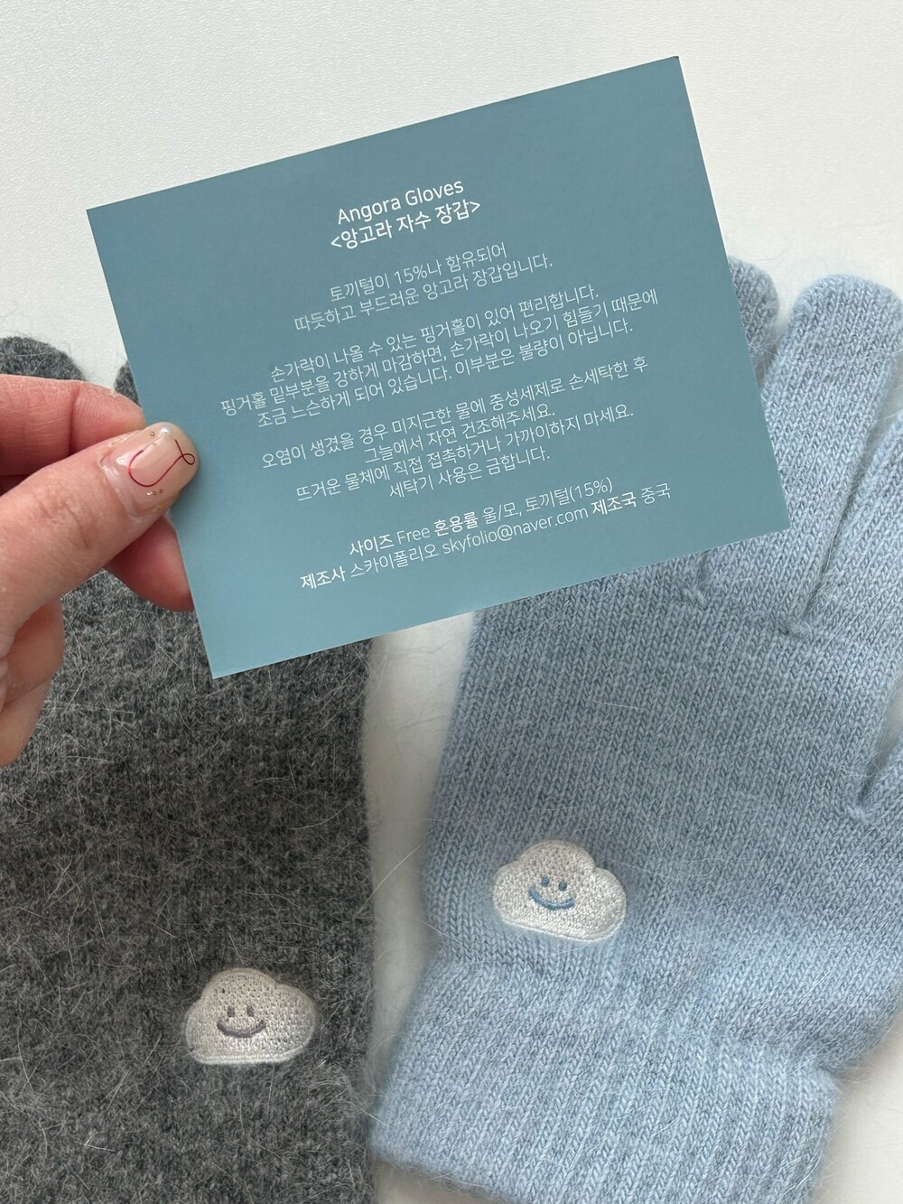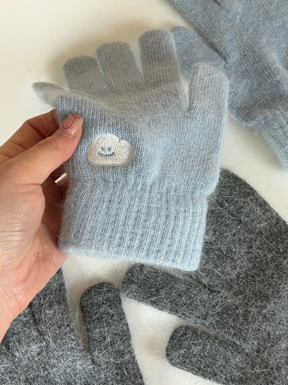 앙고라 구름 자수 장갑