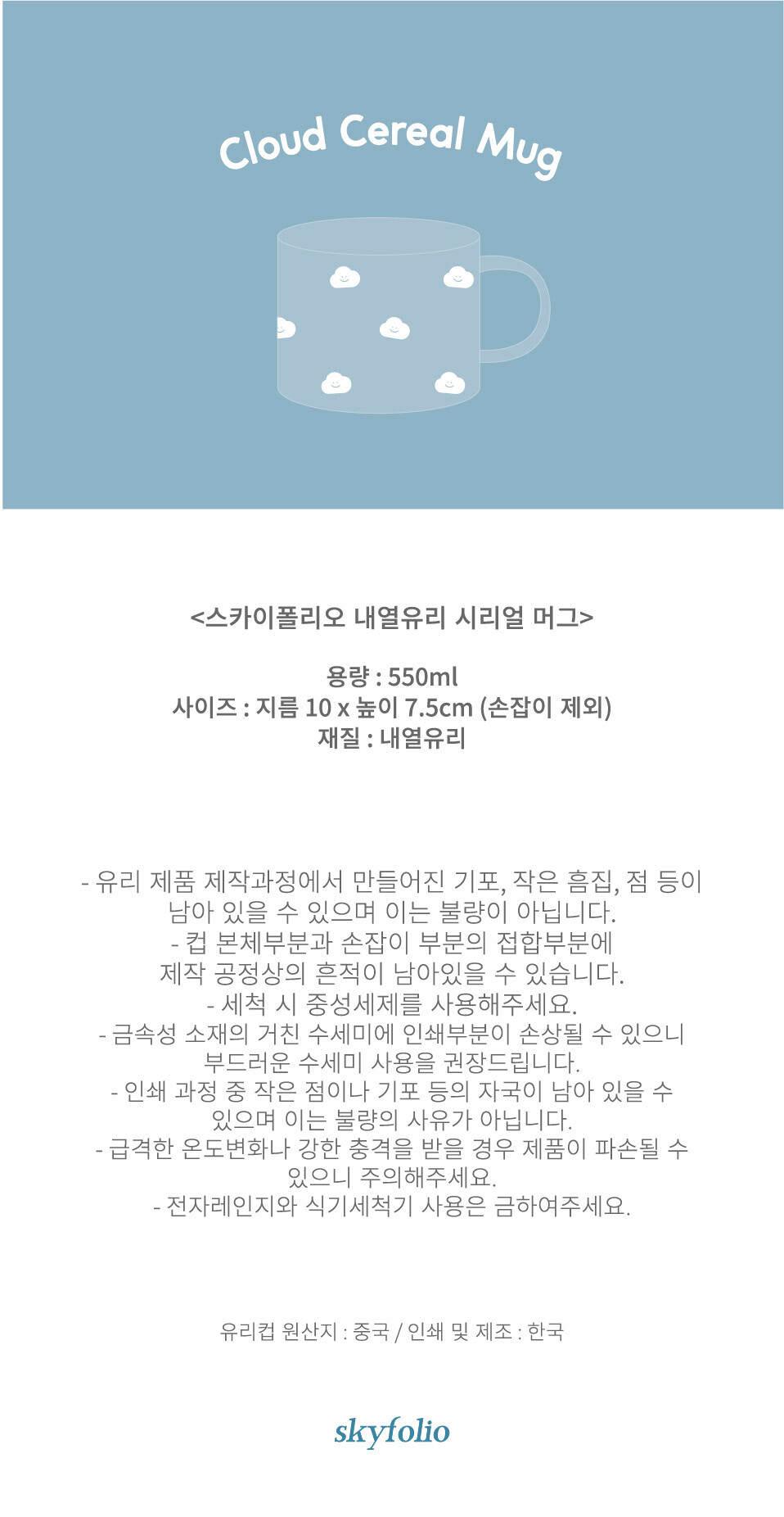 구름팡팡 시리얼머그 white (550ml/내열유리)