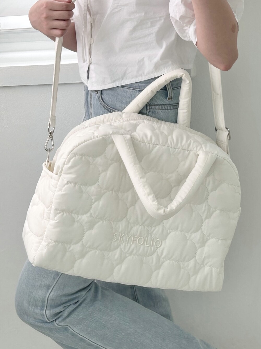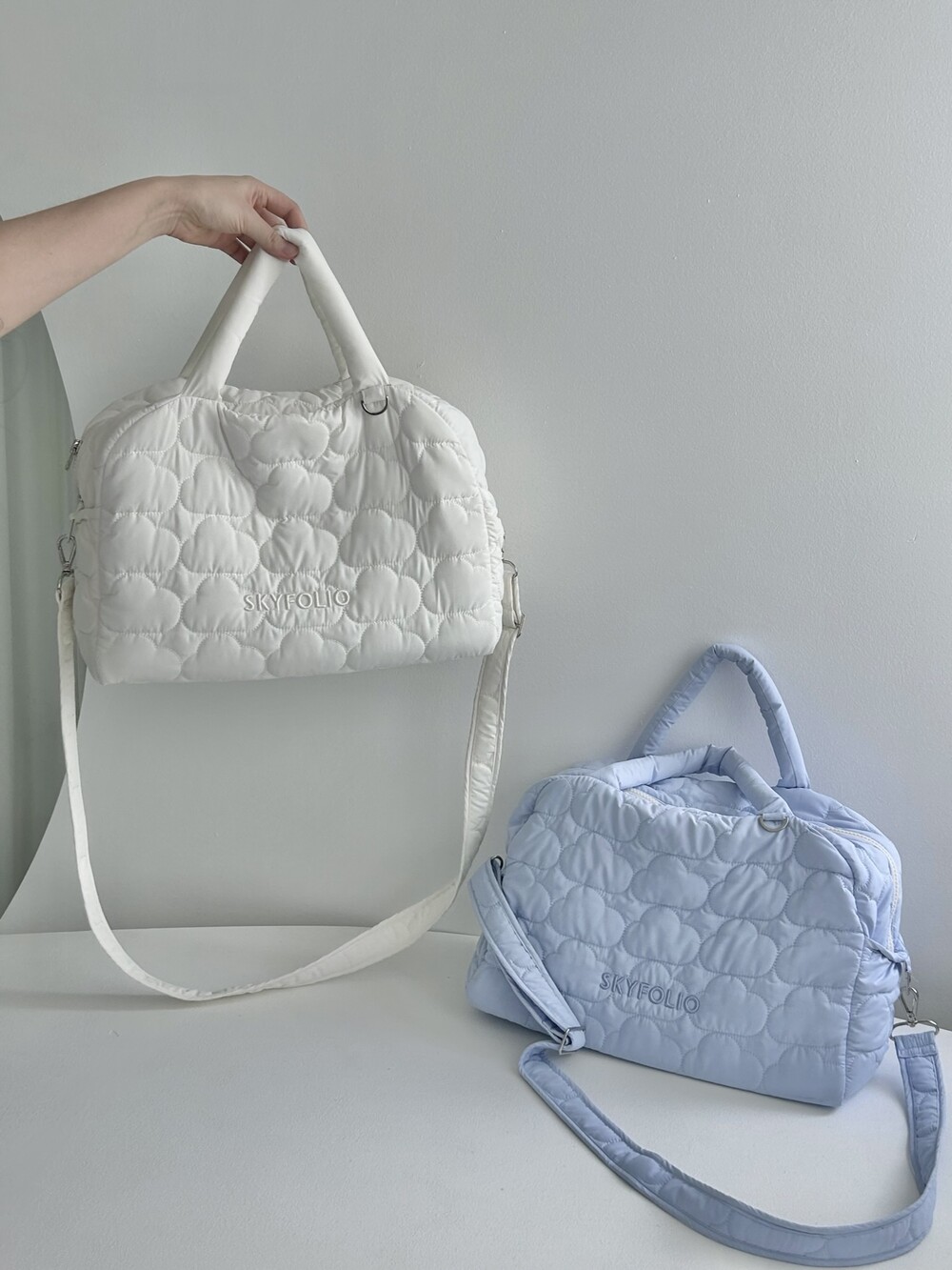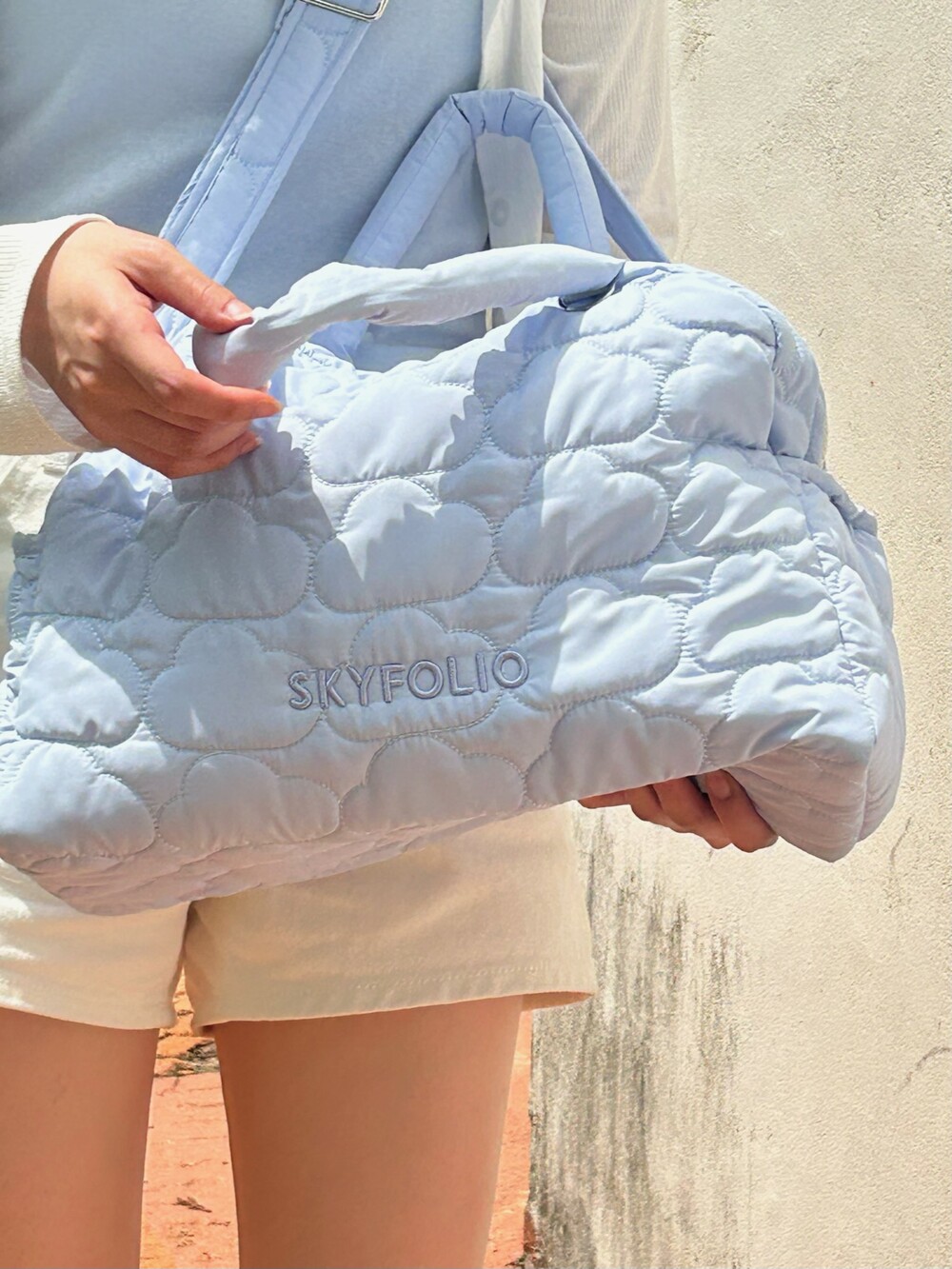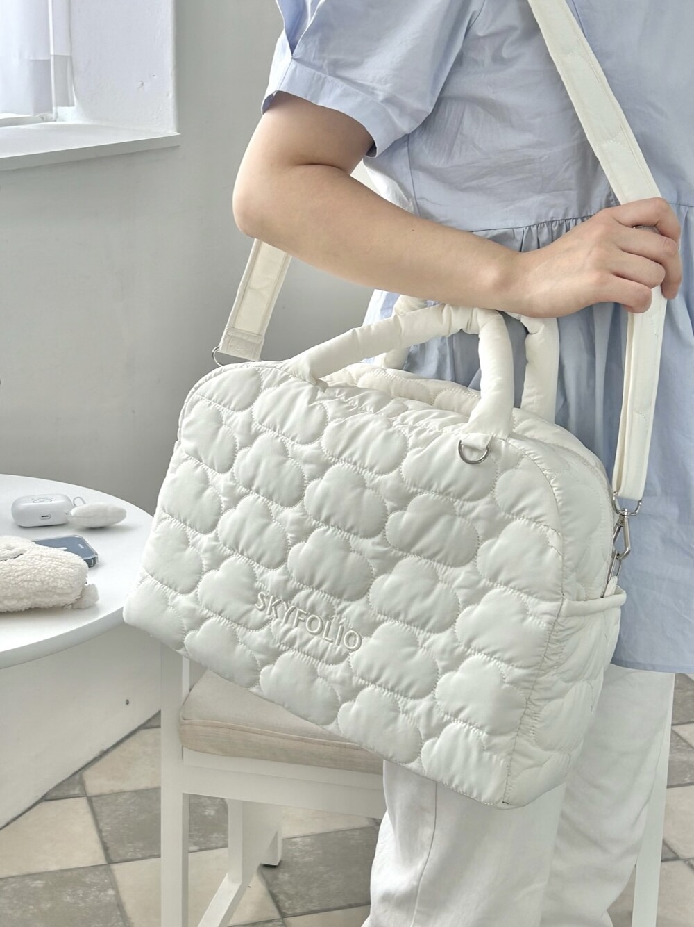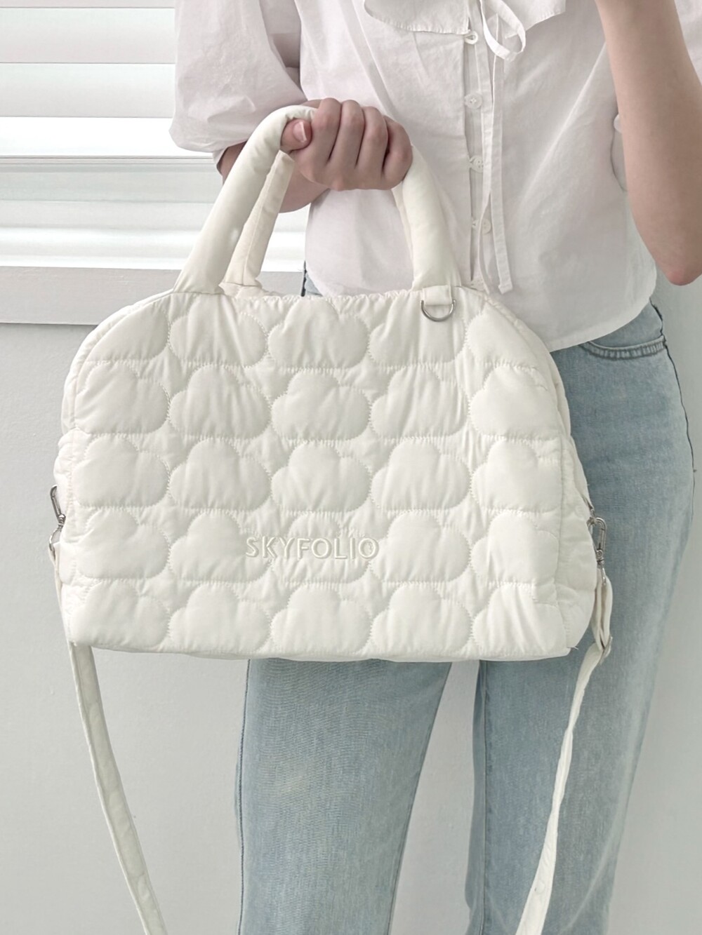 스카이폴리오 시그니쳐 구름 모양으로 직접 퀼팅한 가방입니다.☁️