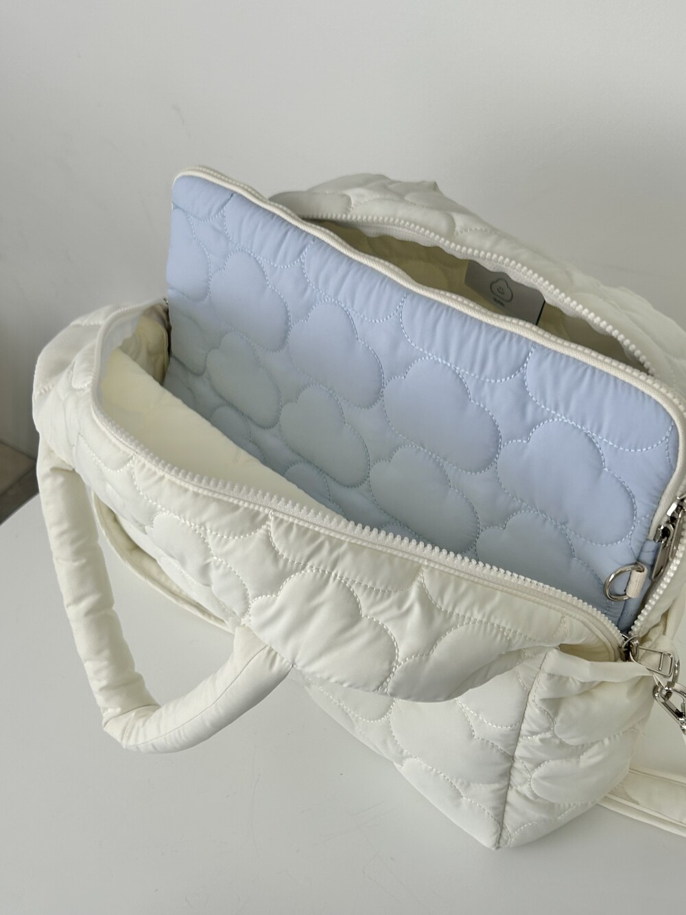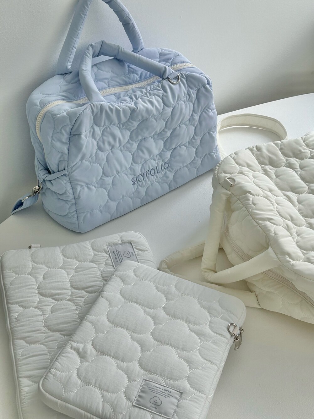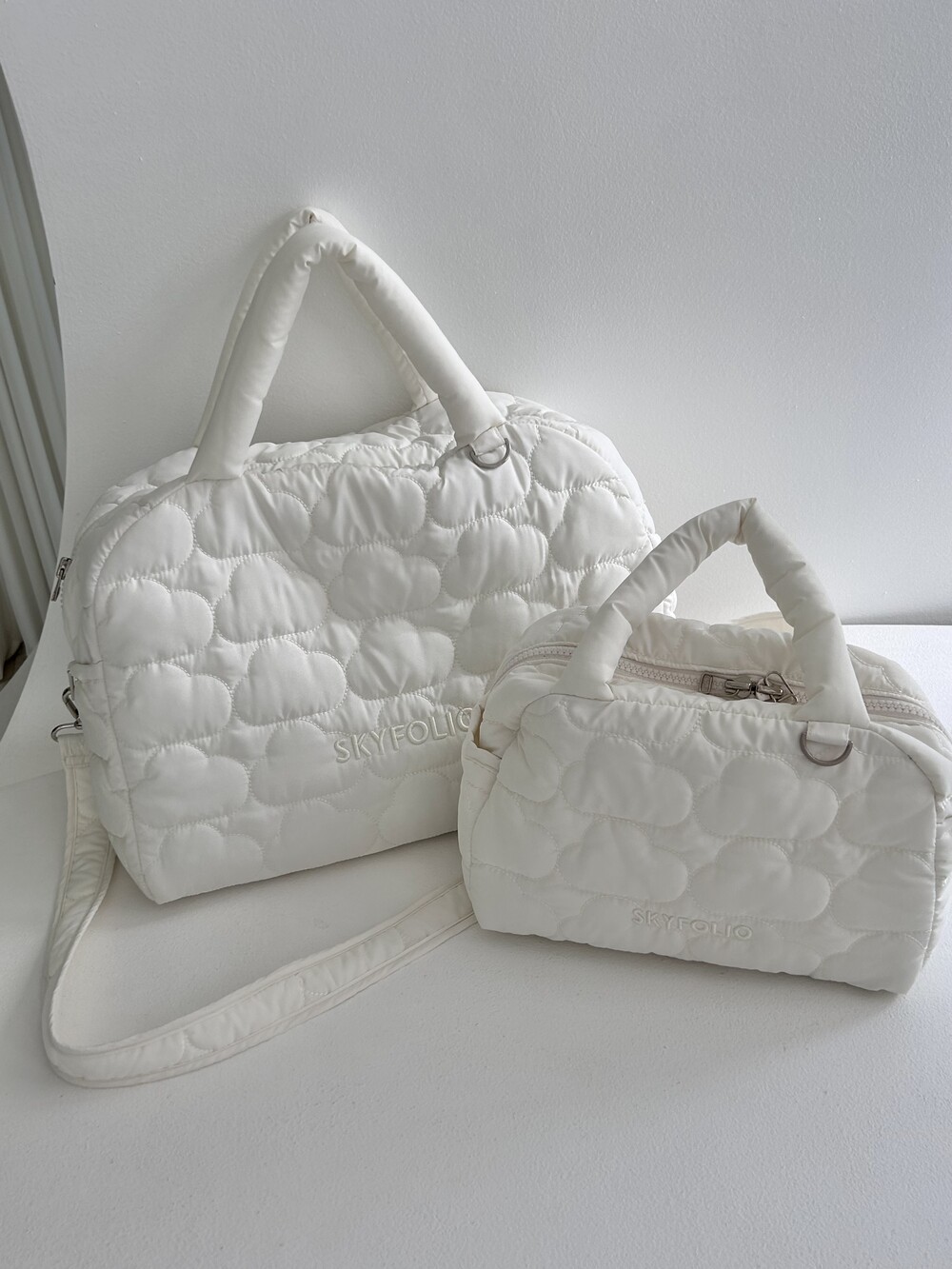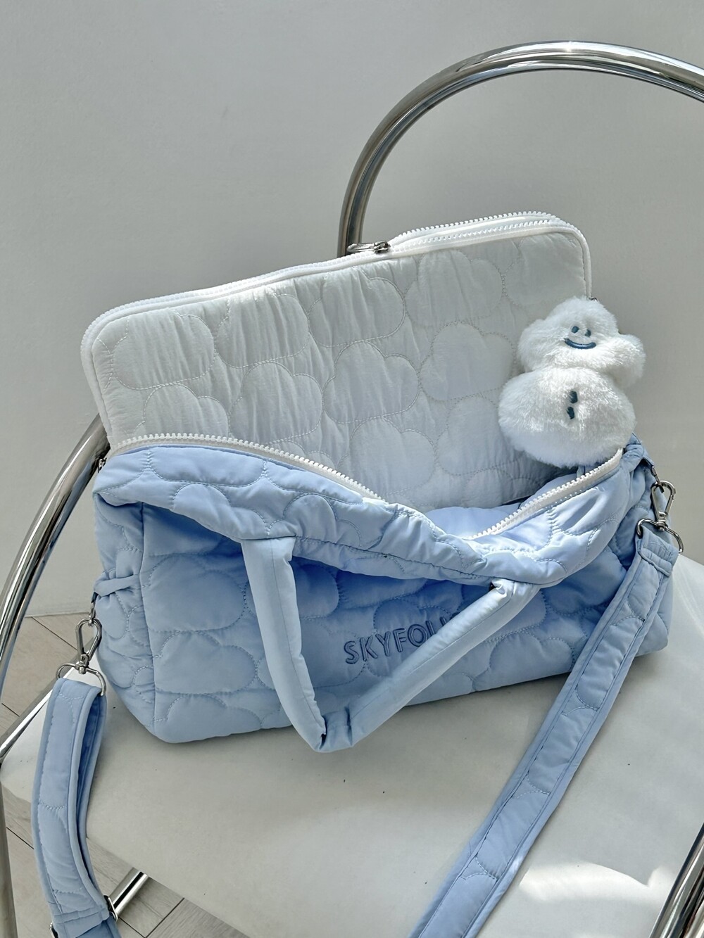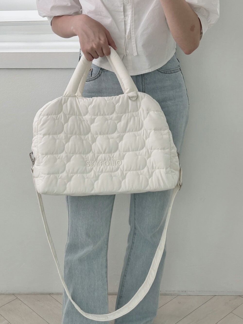 스카이폴리오 시그니쳐 구름 모양으로 직접 퀼팅한 가방입니다.☁️