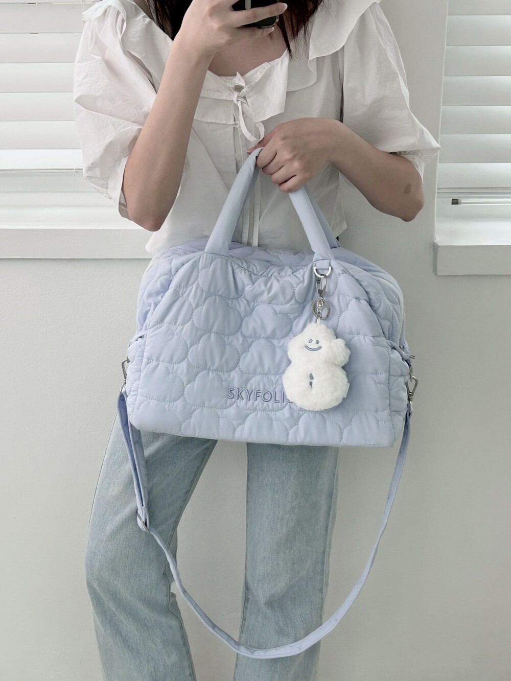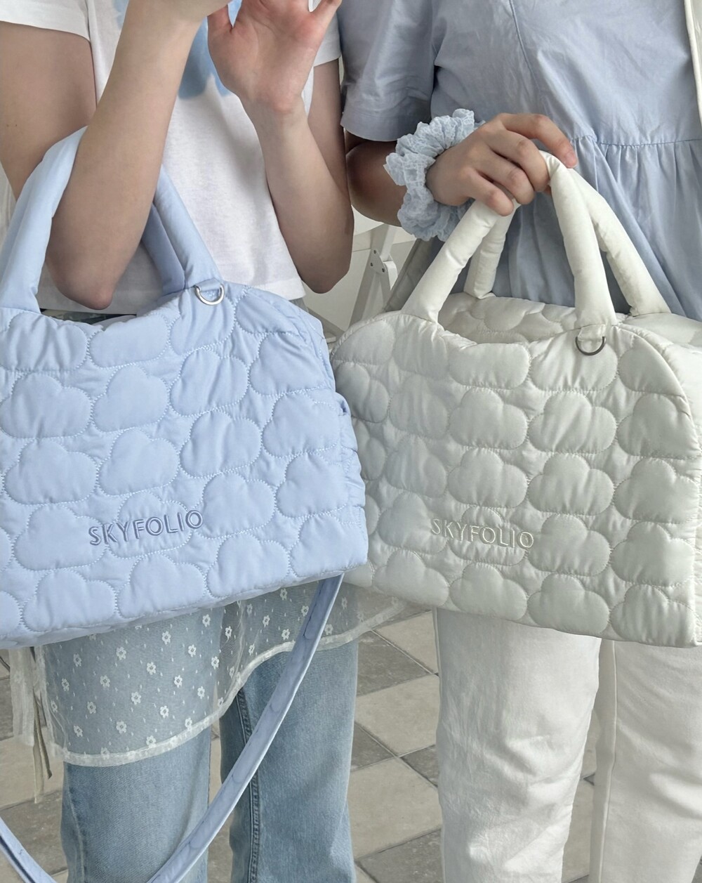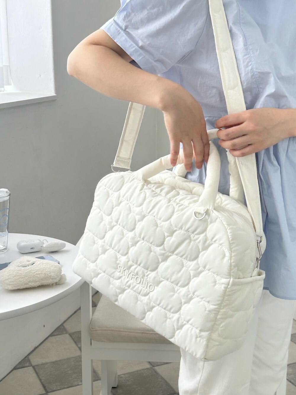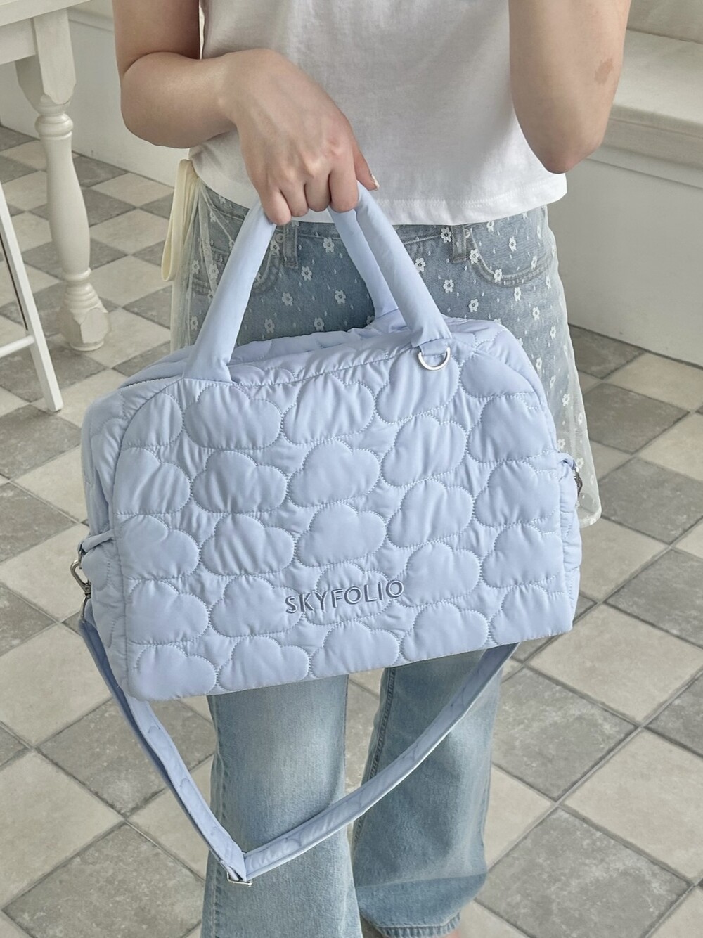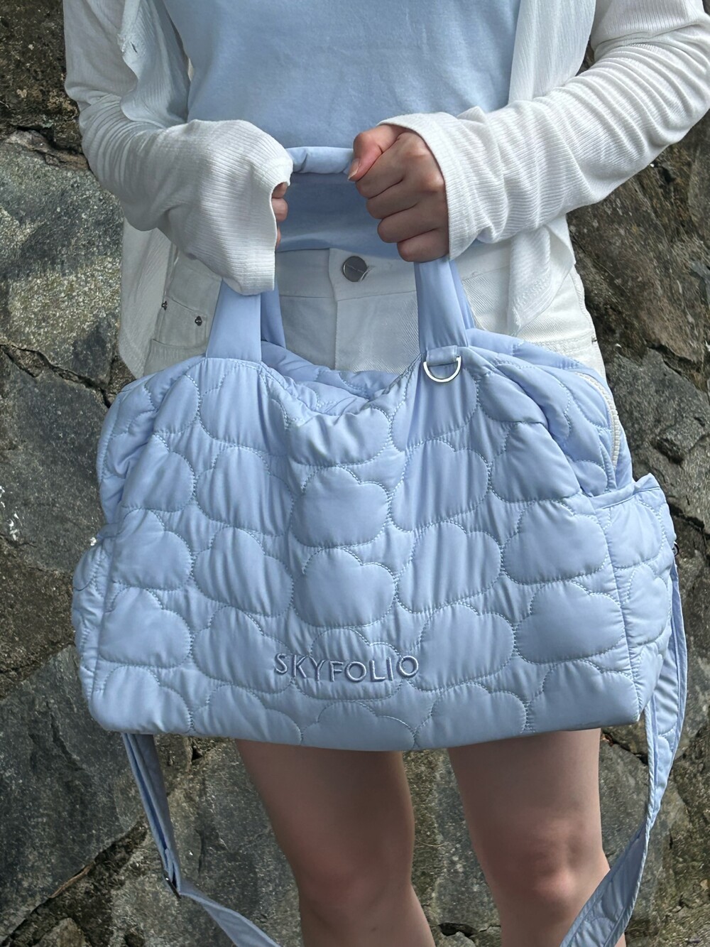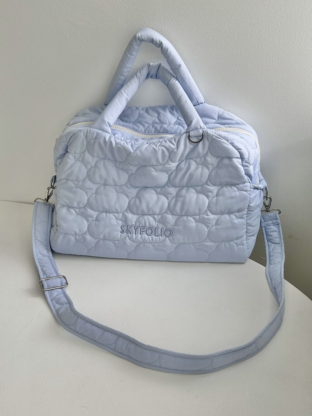 스카이폴리오 시그니쳐 구름 모양으로 직접 퀼팅한 가방입니다.☁️