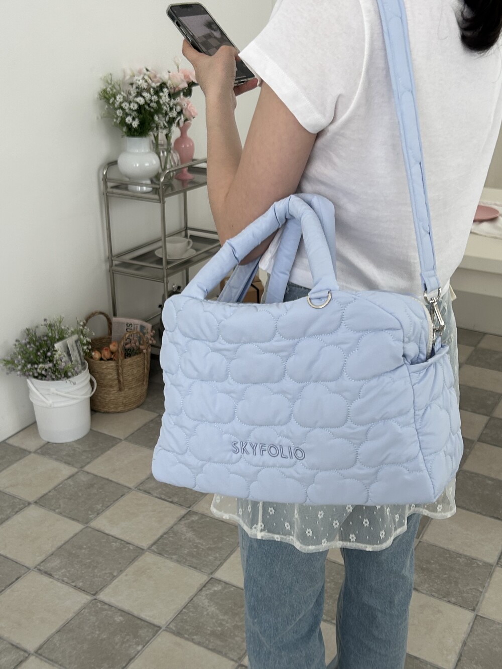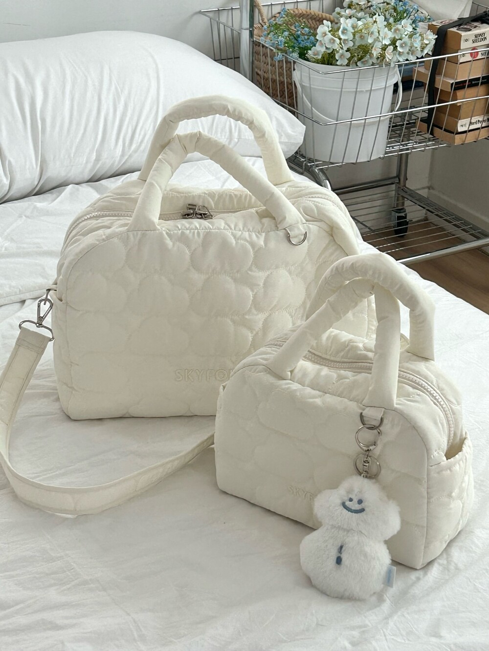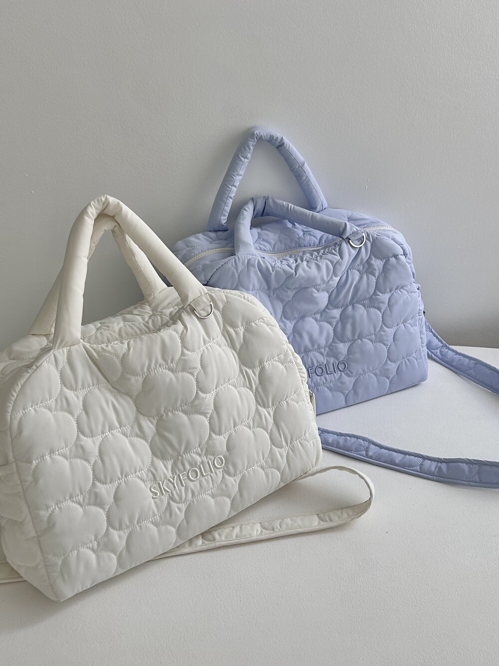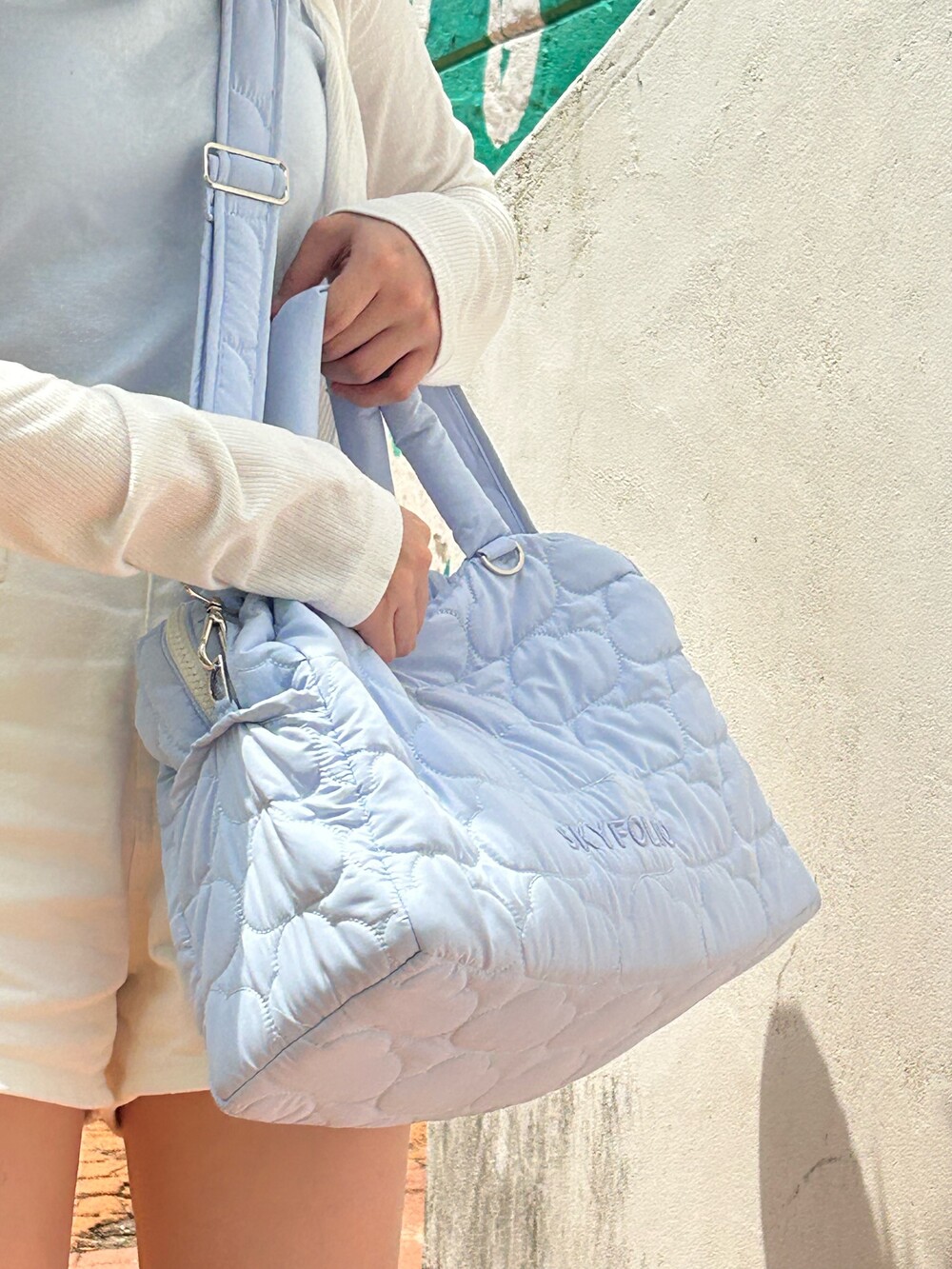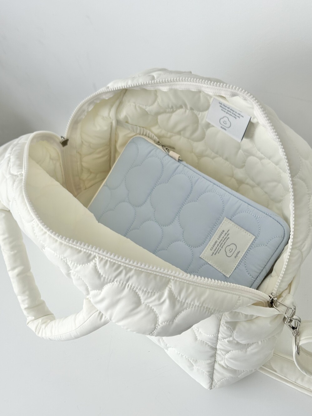 스카이폴리오 시그니쳐 구름 모양으로 직접 퀼팅한 가방입니다.☁️