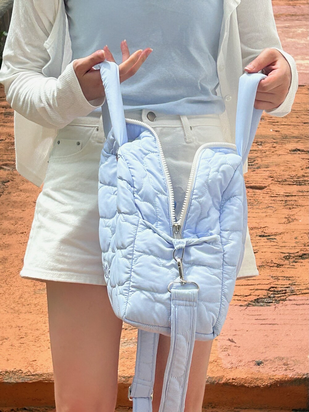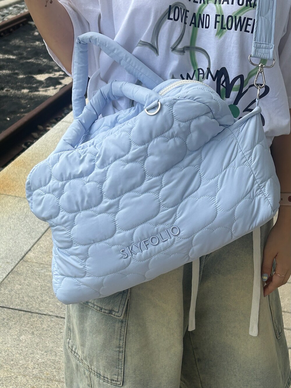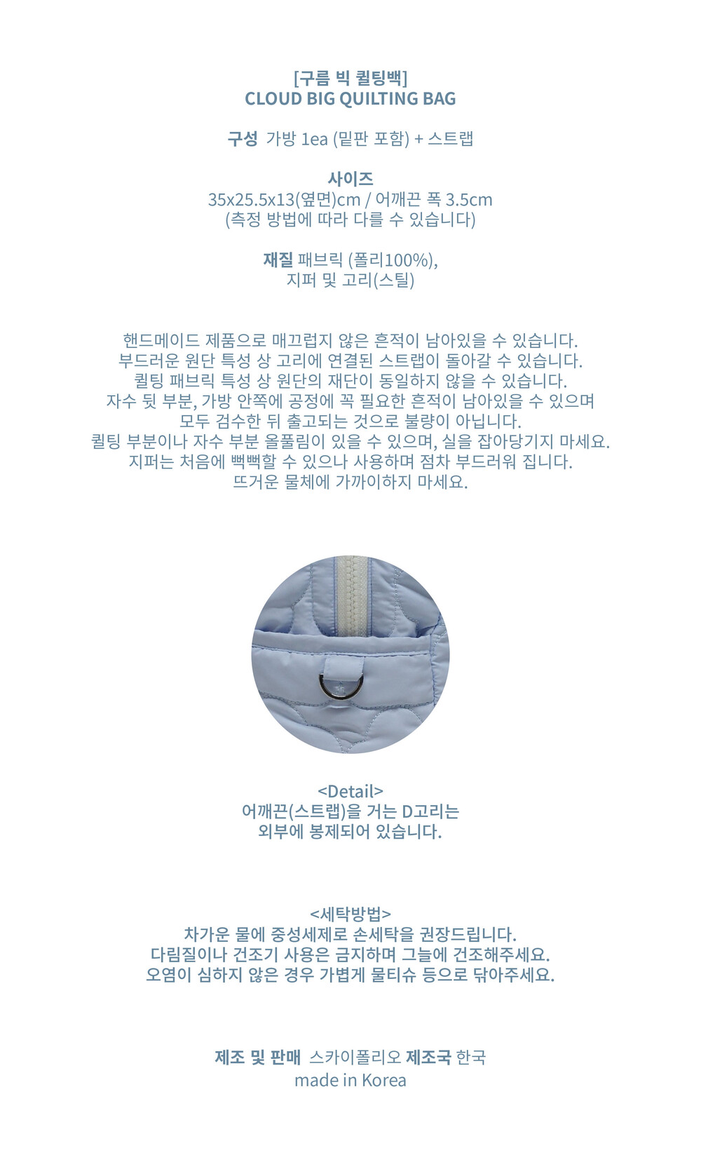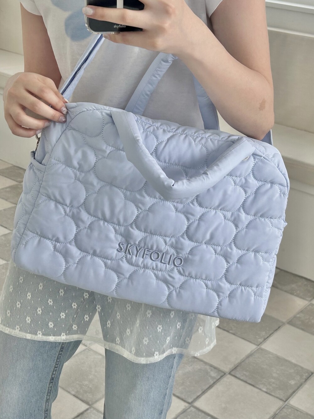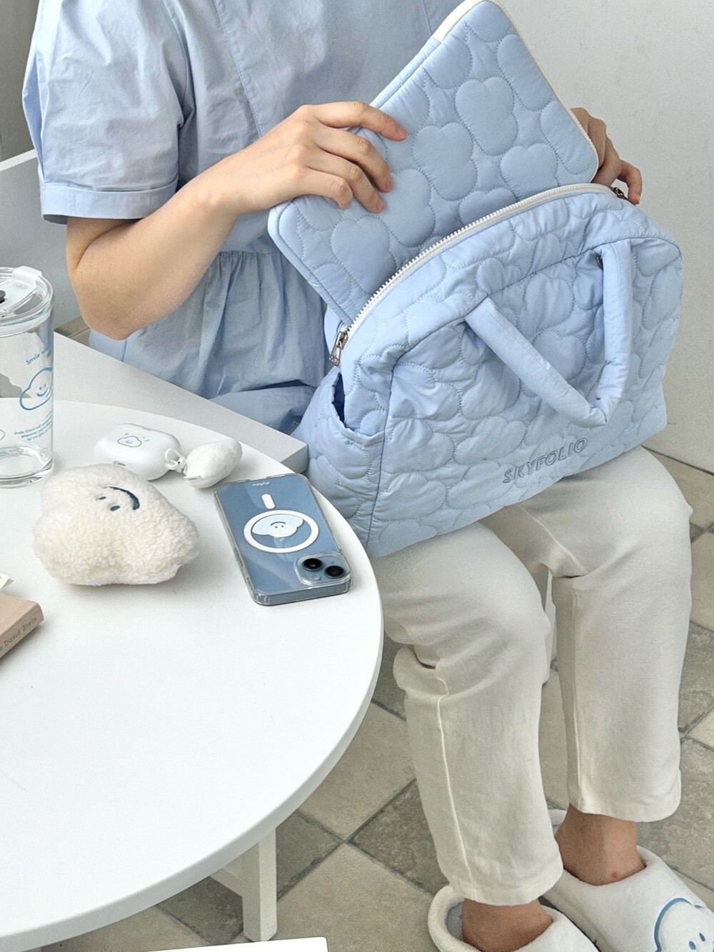 스카이폴리오 시그니쳐 구름 모양으로 직접 퀼팅한 가방입니다.☁️