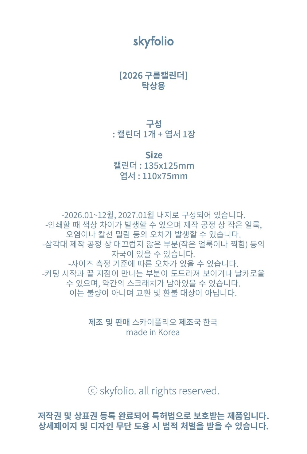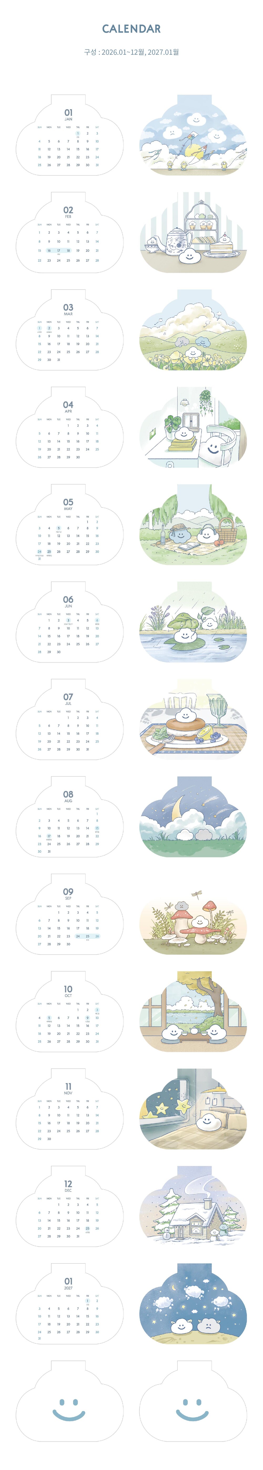 [2026] 구름 캘린더 (탁상형)