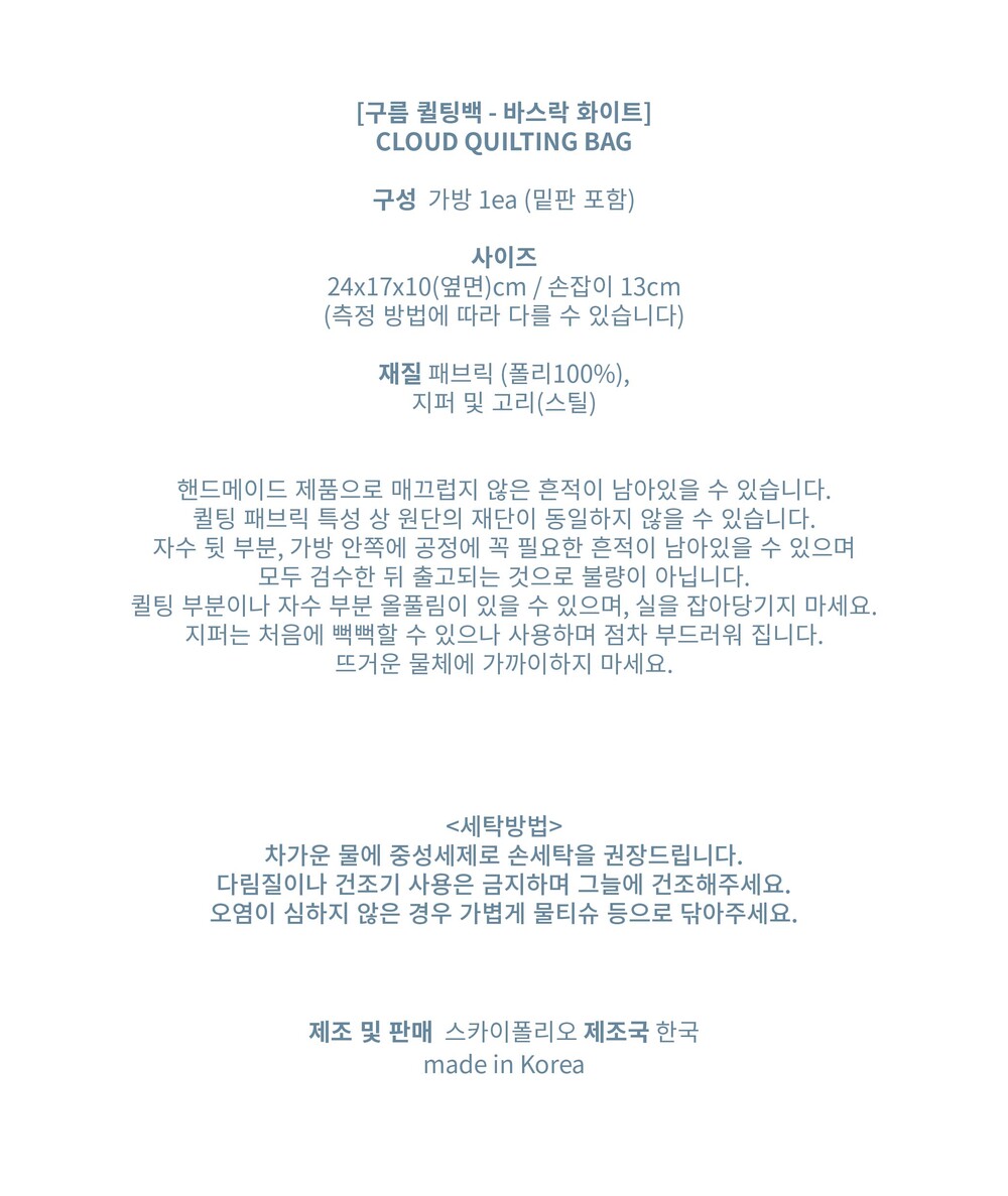 스카이폴리오 시그니쳐 구름 모양으로 직접 퀼팅한 가방입니다.☁️