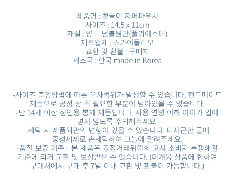뽀글이 원단으로 제작된 지퍼파우치입니다.
