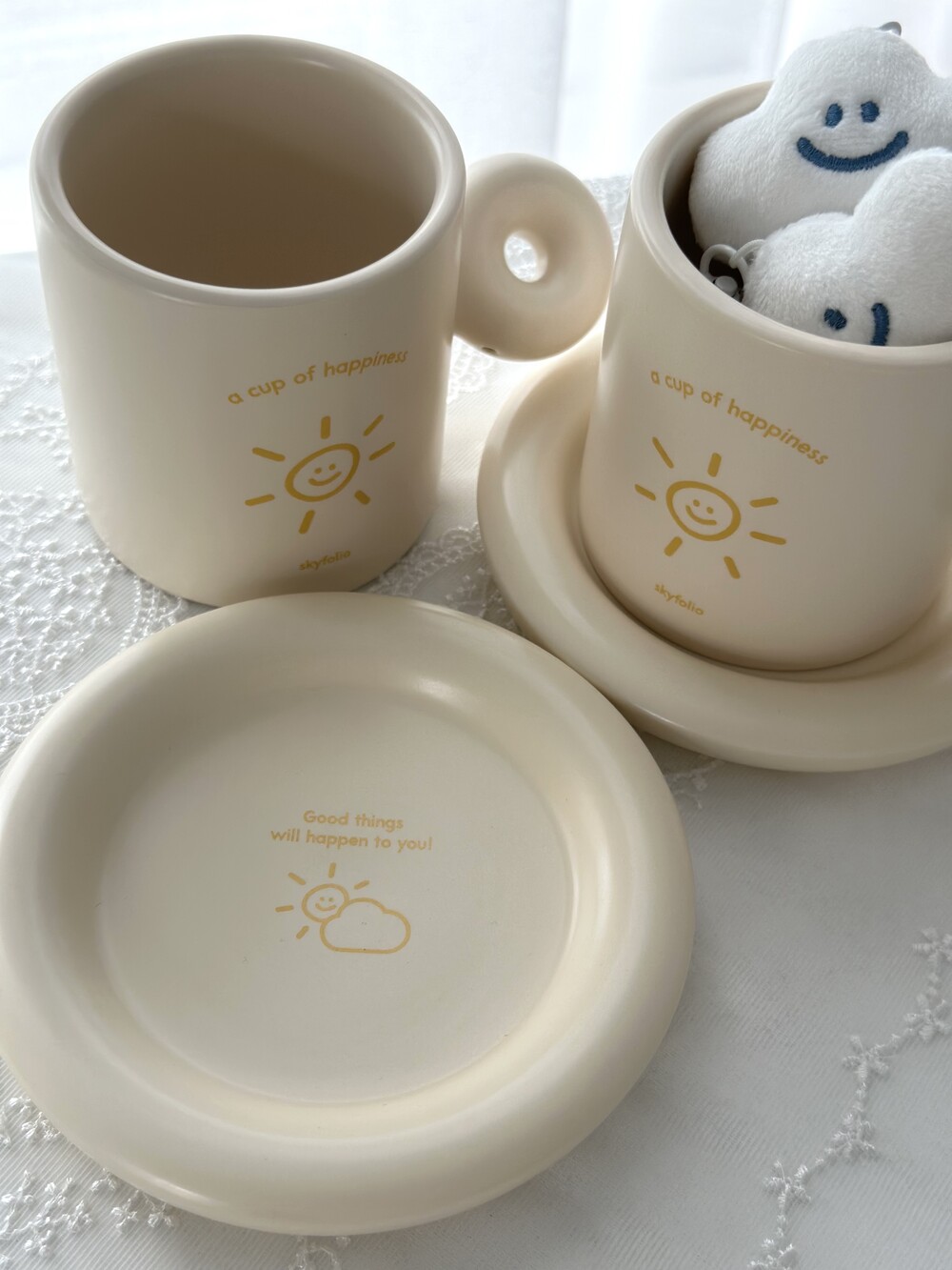 Happiness 컵앤소서 세트 (구름·햇님 2종)