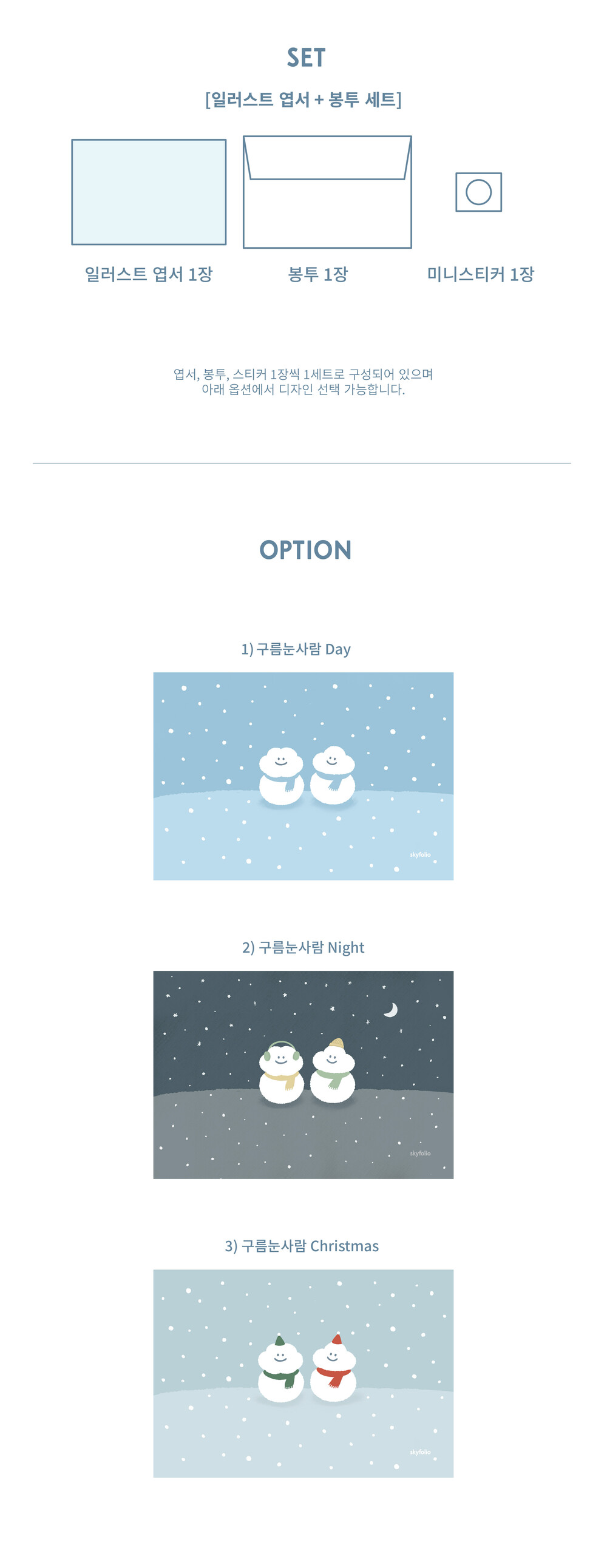 구름눈사람 드로잉 엽서 (+봉투 set) 3종