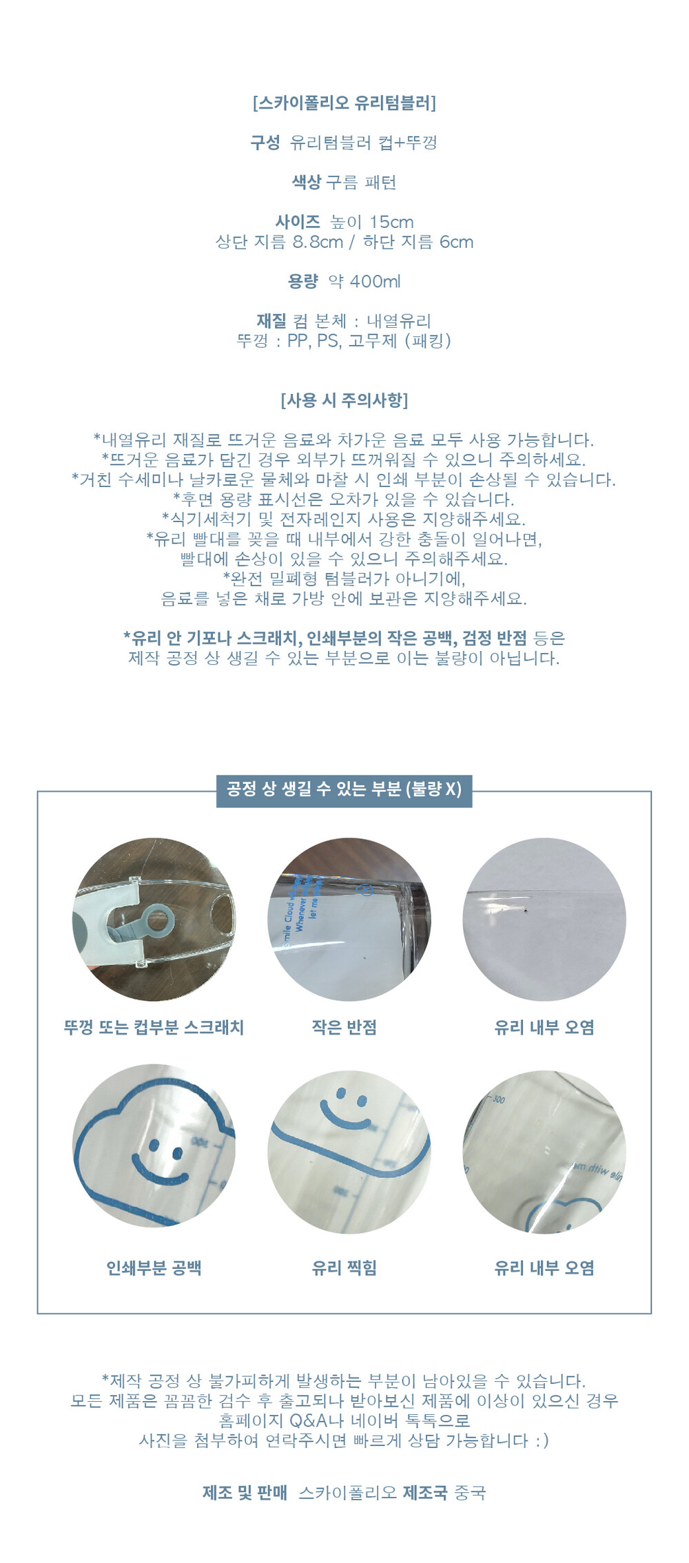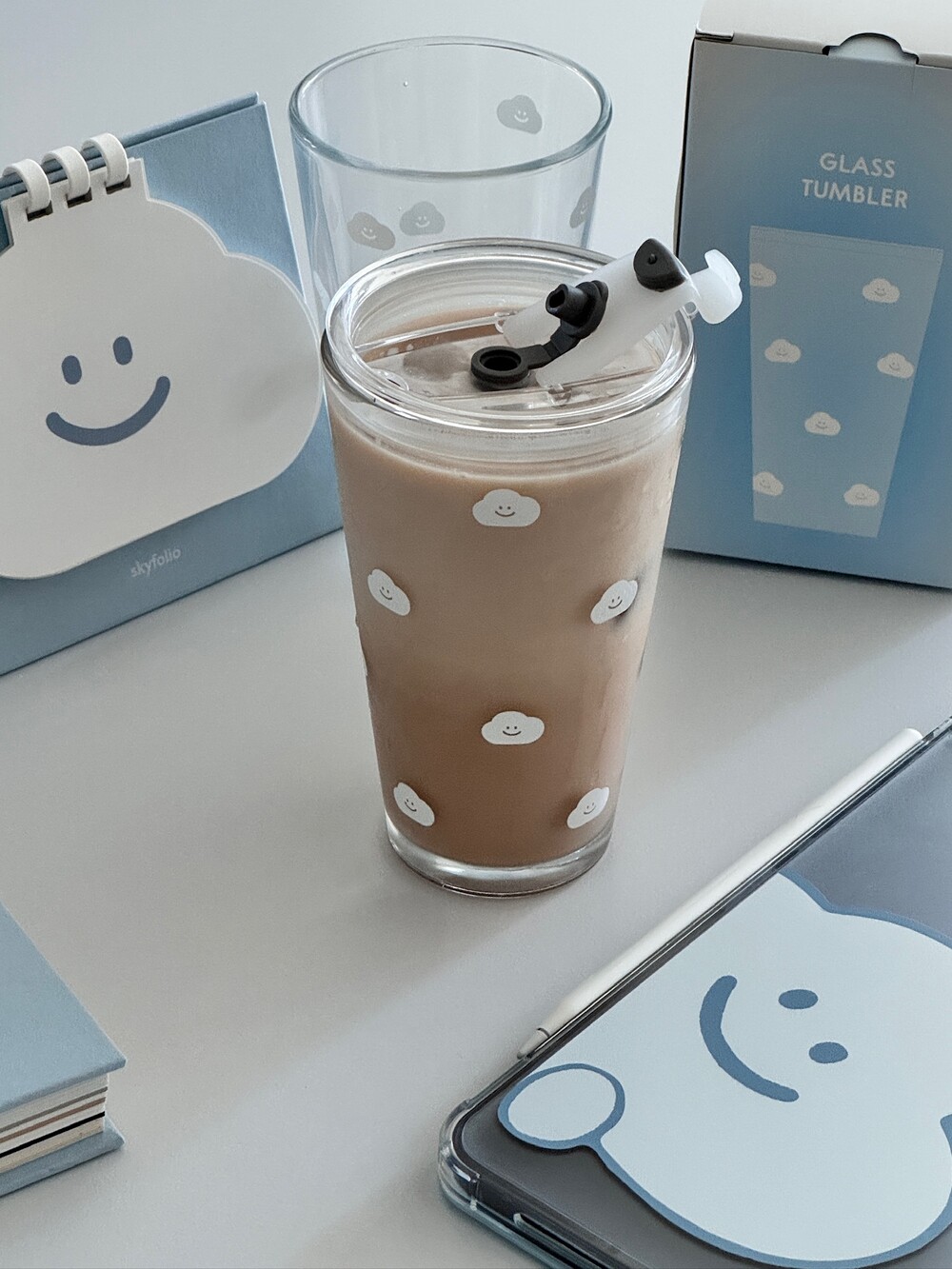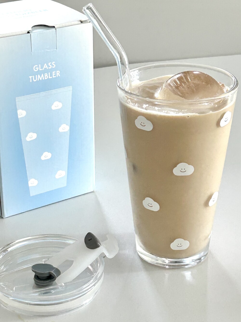 유리텀블러 - 흰구름 패턴