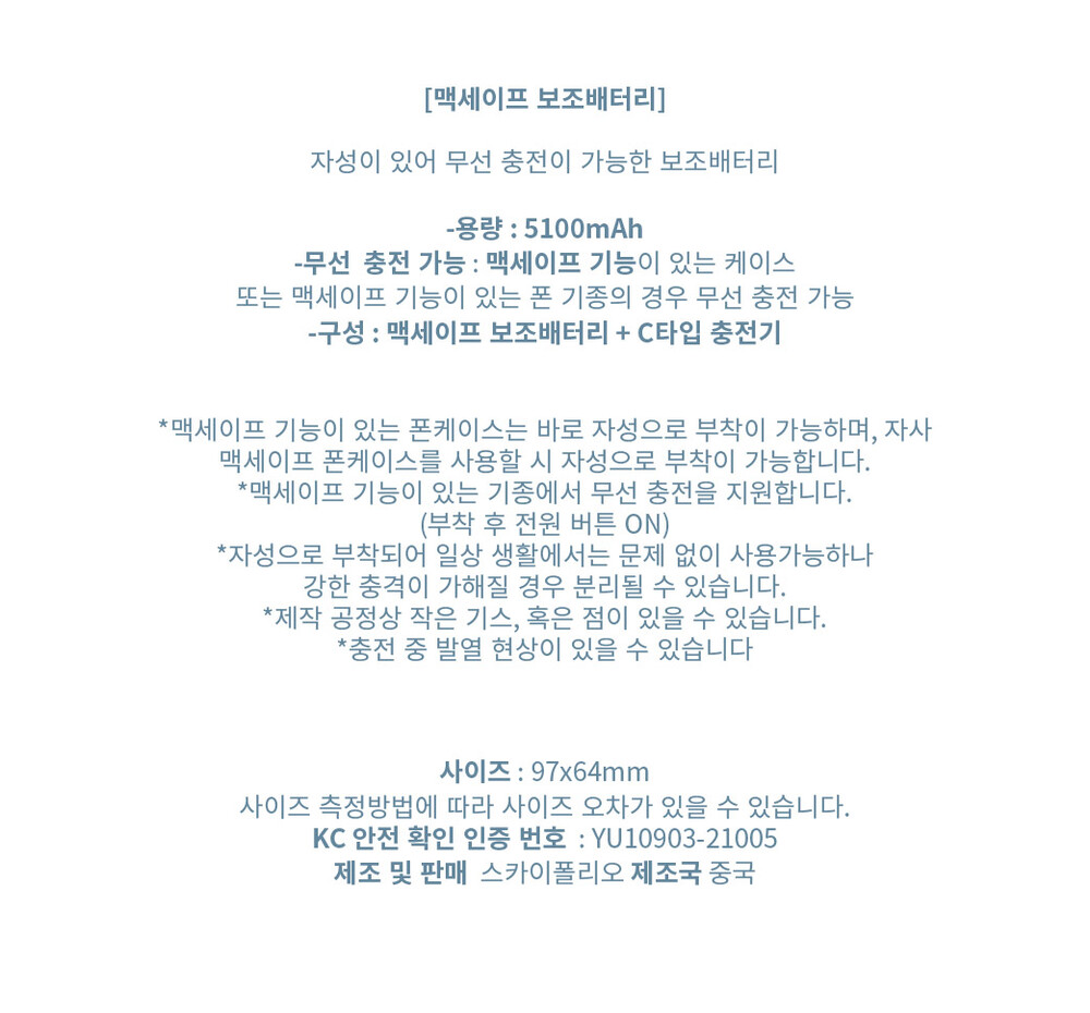 맥세이프 유•무선 보조배터리 (구름패밀리) 5100mAh