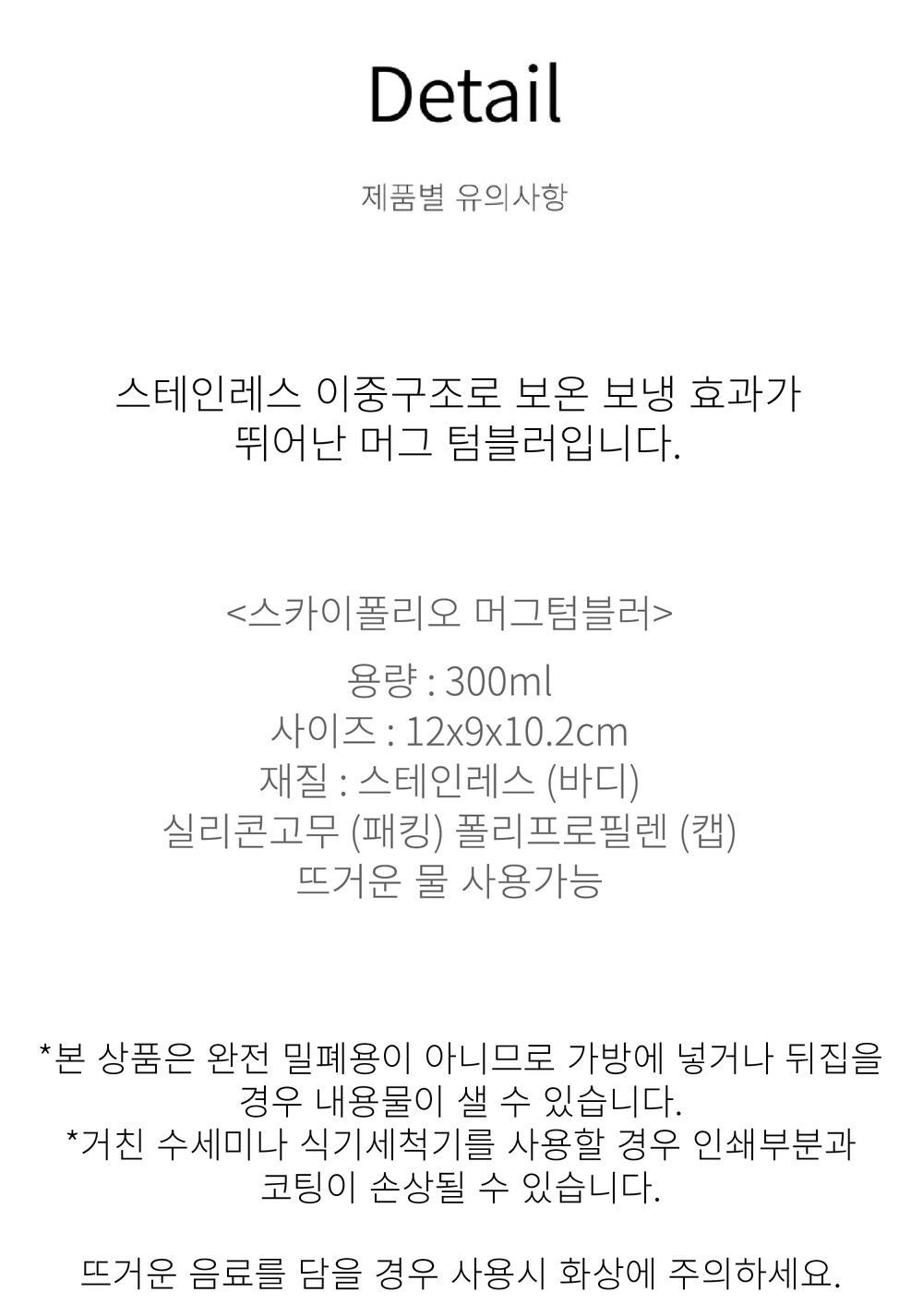 *완전 밀봉 제품은 아니므로 음료를 담은채 가방에 넣지 마세요.
