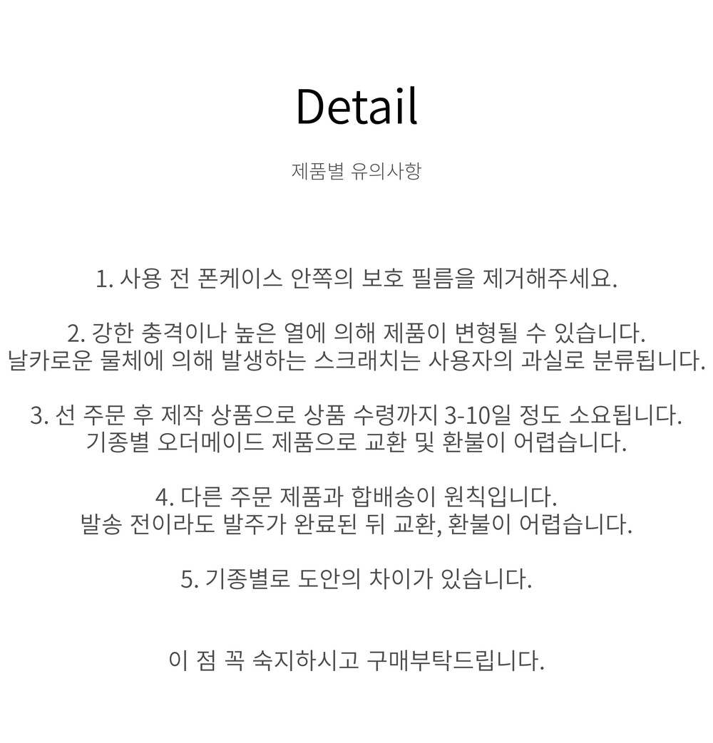 주문 제작 상품으로 기종 선택 실수로 인한 교환 및 환불은 불가합니다.
