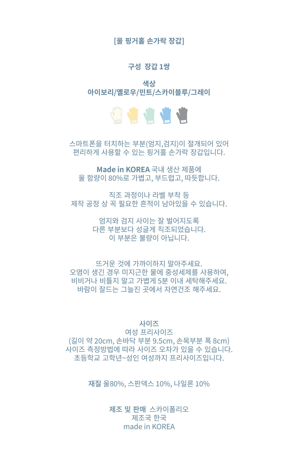울 핑거홀 손가락 장갑 5종